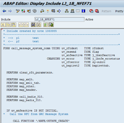 To the 3.10 layout specifically, the final data mapping runs into the perform call_message_system_comm where the xml* structure data xml* are mapped to the GT_RFC* and GS_RFC* which will be sent to SAP NFe.