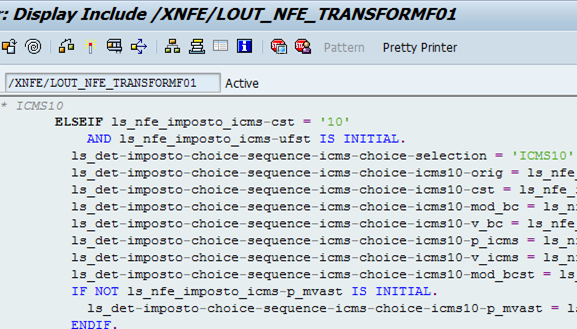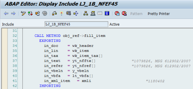 At this point it is required to check if the tables/structures GT_RFC* and GS_RFC* are populated with the required data or not. If the information is correct at this point, then the issue is in the data mapping at the SAP NFe. If the information is not fulfilled or incorrect, then the issue is in the mapping of the data in the SAP ERP.