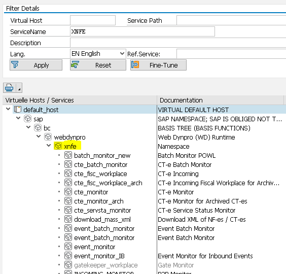 - /XNFE/NFE_CHECK_SRV_STATUS for checking the Web Service availability of SEFAZ, SCAN and SVC