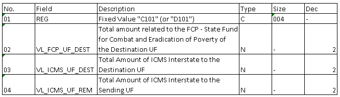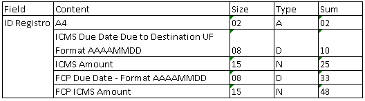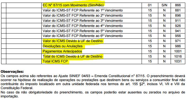 VII – Changed the 0015 record name to “DADOS DO CONTRIBUINTE SUBSTITUTO OU RESPONSÁVEL PELO ICMS DESTINO”.